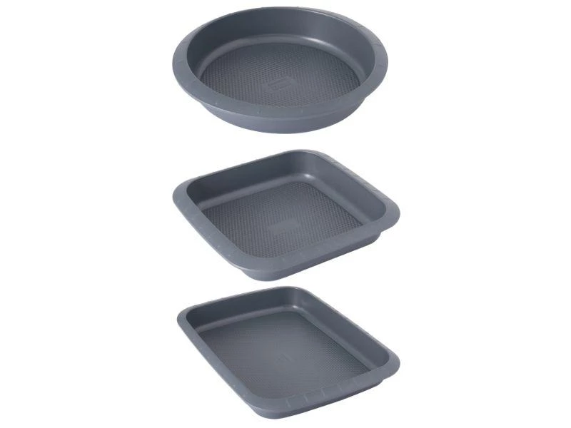 A delicious chocolate cake, banana muffins, a crusty loaf of bread or a crispy pizza. These all conjure up all kinds of tasty treats with the carbon steel Gem bakeware! These ingenious bakeware items ensure an excellent result every time, thanks to their functional features including lightweight carbon steel, a high-end non-stick coating. The icing on the cake? the grid lines are perfect for portion control! This set includes 1x square cake pan, 1x round cake pan, 1x rectangular cake pan