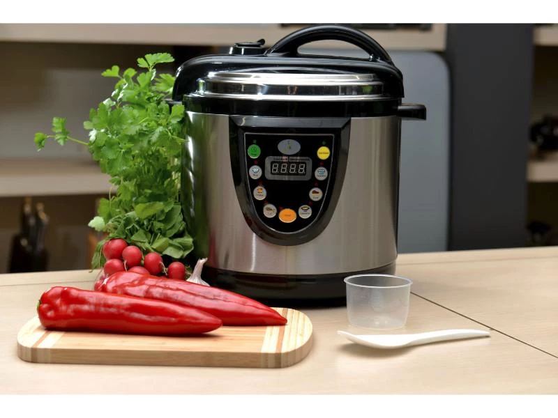 The 5-in-1 electric pressure cooker is designed to use the latest technology to save you time and money. The cooker has the benefits of a pressure cooker, rice cooker, steamer, and warmer. The features include programmable temperature and pressure control. The cooker has new and distinctive functionality along with contemporary exterior design. It is reliable and safe to operate providing energy savings and consistent quality cooking results. 110volts and 48″ cord length.