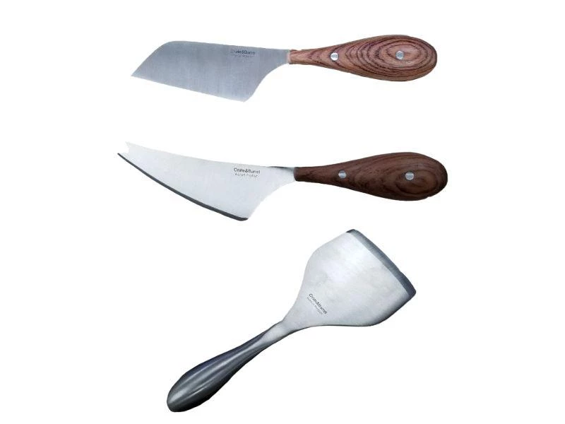 Enjoy the beautiful design of this cheese tool set, designed by Aaron Probyn. The stainless steel is durable and sure to last! The handles have a classic look to match any décor and are designed for a strong and secure grip. Set includes: 7.25″ George Wedge Cheese Knife, 9″ Provence Soft Cheese Knife, and a 8.25″ Provence Hard Cheese Knife.