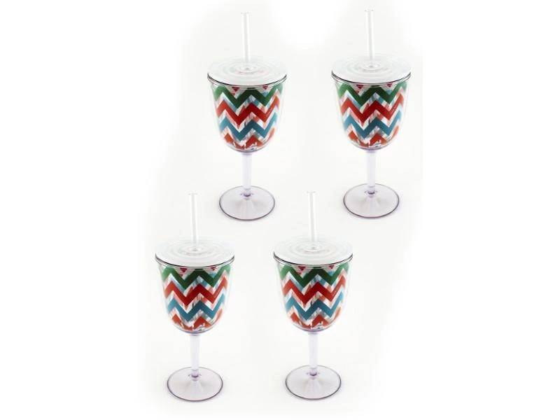 Set Includes: (4) – Chevron pattern Wine Glasses. Enjoy your favorite cold beverages with our chic chevron patterns. These reusable cups are as refreshing as they are practical pool side, every day, or by a fire.