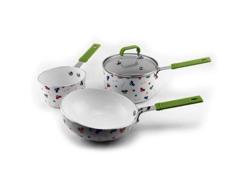 Kids love to imitate their parents cooking in the kitchen. Our mini play cookware set ought to get quite a workout. Stove capable for any small stove top on low. Teach your kids how to do everything from flipping eggs to there very own signature sauces. Set includes 4.75″ mini saucepan, 5.5″ mini saucepan with lid and 6.3″ mini fry/flip pan