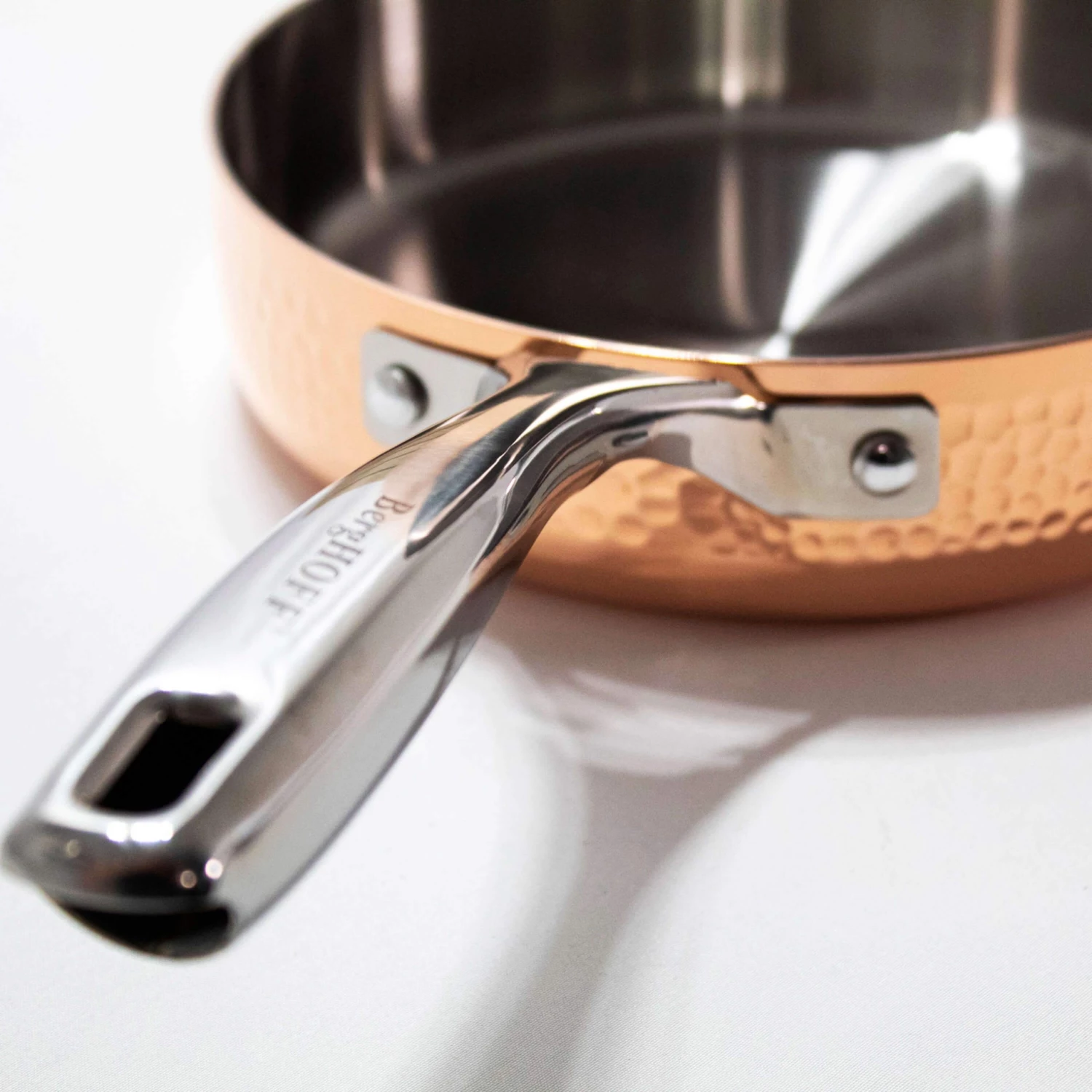 This deep skillet will impress anyone who witnesses your culinary skill. The hammered copper texture stands out against your kitchen backdrop while the deep skillet functionality makes sure that any fried meal is proportionally cooked.