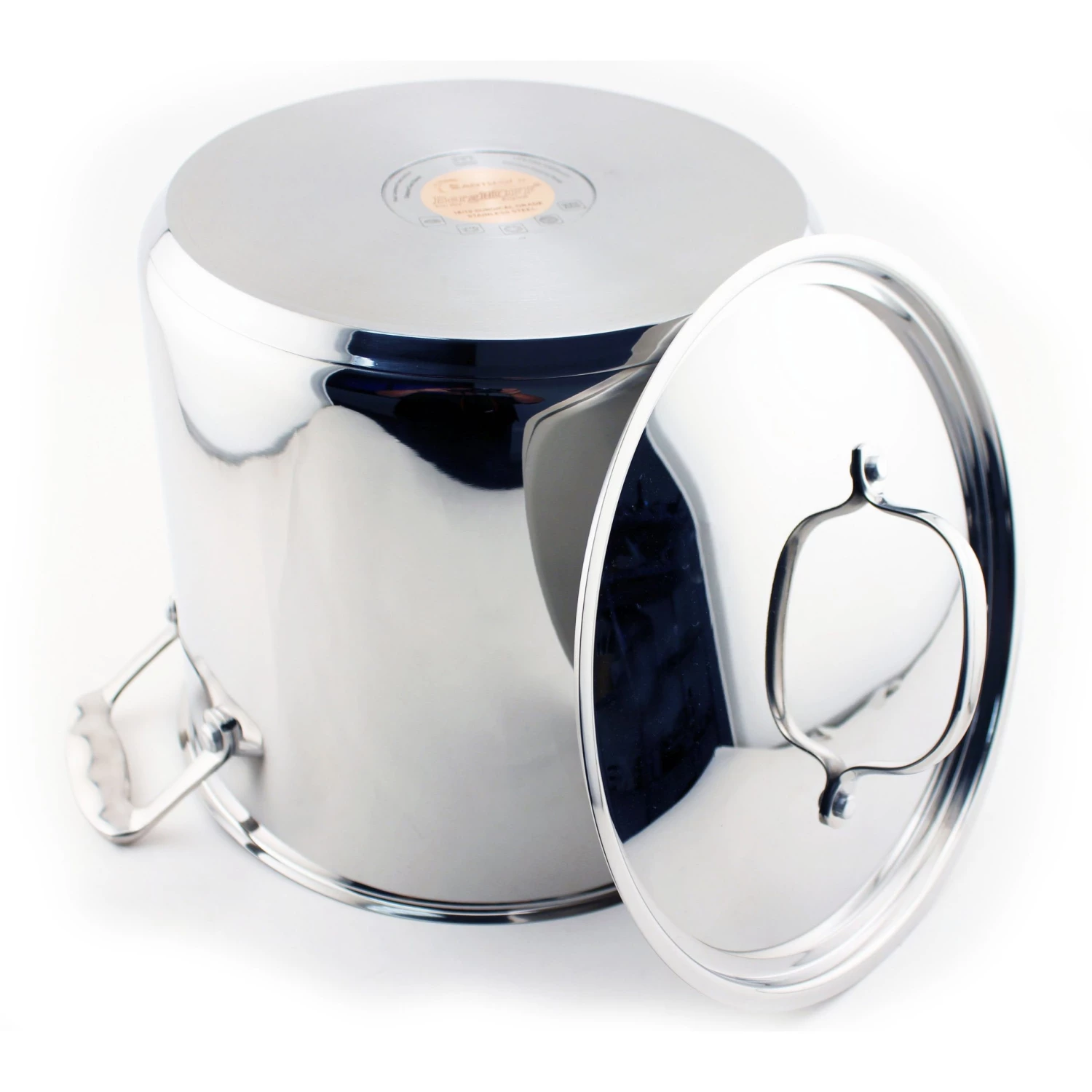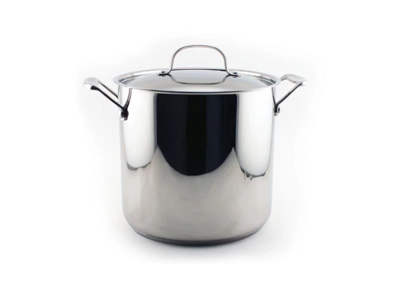 This 10 Qt., premium, stainless steel stock pot by EarthChef is an excellent addition to any chef’s collection. Made from high-quality stainless steel and sporting a patented sandwich base and copper core for even heating, this pot will be a part of your kitchen for a long time. Handles are mirror finish stainless steel.
