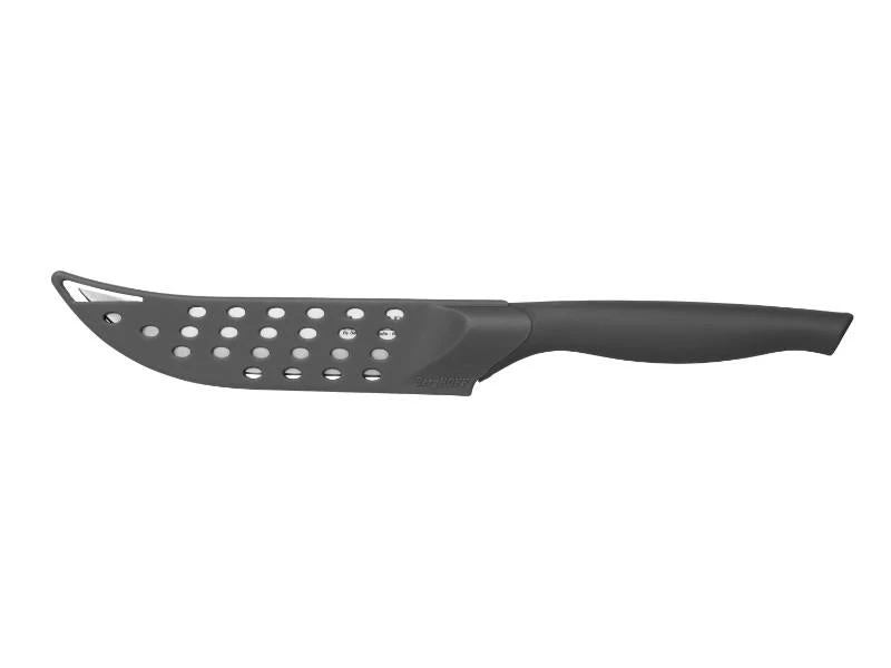 An appetizing bruschetta, a flavorful pizza or a tasty homemade spaghetti bolognese, whatever you’re preparing, simply get out your trusted tomato knife and cut, slice or dice your tomatoes just the way you want! The sharp blade with non-stick coating glides right through the skin and softer interior and makes sure the tomato seeds don’t stick to the knife. Thanks to the ergonomic soft-grip handle this knife is extremely easy to handle while the protective sleeve guarantees safe storage that protects the blade as well as your hands.