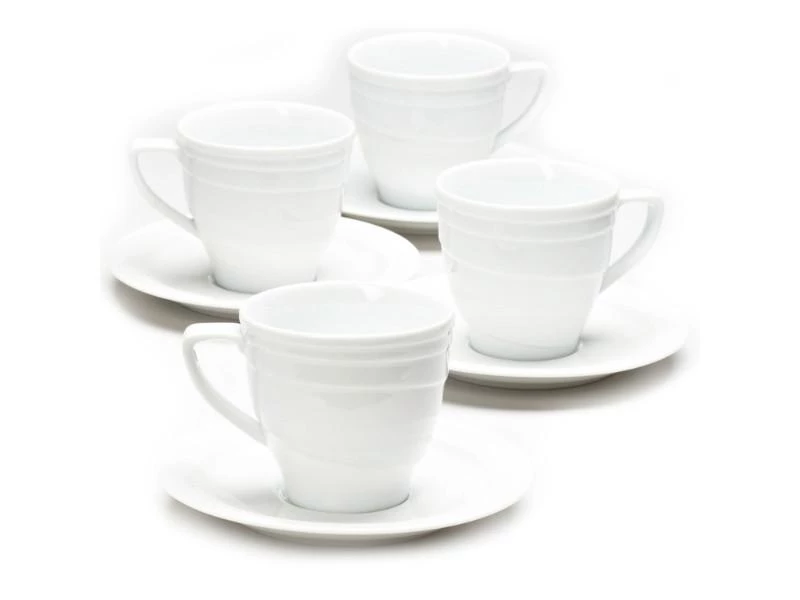 Set Includes: 4 – Saucer plates. Elan 4 Pieces Tea Cup & Saucer set is made of the highest quality porcelain with an elegant styling. Protected against scratching from knifes and forks. Designed for everyday use.