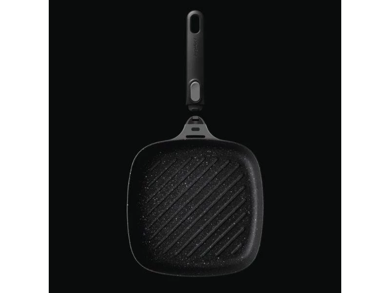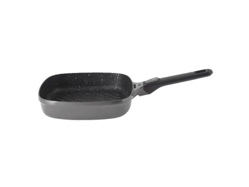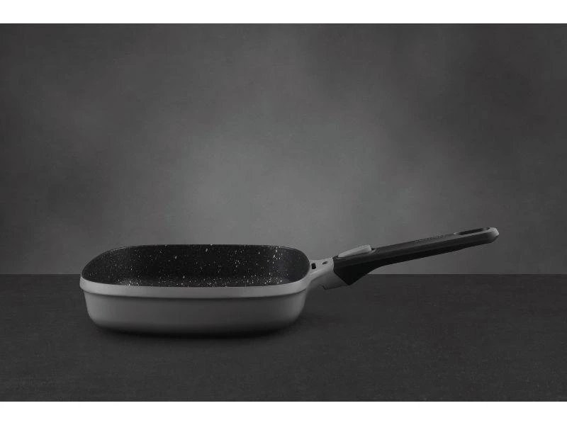 When it comes to char-grilled veggies or that perfectly grilled steak, this square grill pan is just the thing you need to get the result you want on any kind of stovetop, including induction. The aluminum body heats up quickly and evenly for a superior grilling performance and features a high-quality non-stick coating that ensures a superb food release and an easy clean-up. Want to finish your seared meat in the oven? Just place the pan in the pre-heated oven and easily snap off the detachable handle! Suitable for all cooktops including induction. Inside dimensions: 10x10x2 / Outside dimensions: 17.75×9.75×4