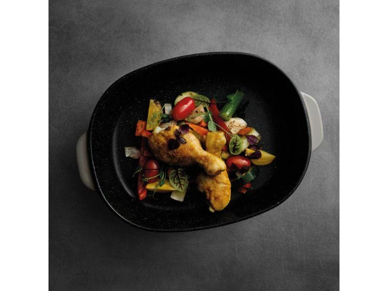 Large enough for a family-sized stew and durable enough to turn out countless meals of throughout the years, this oval baking dish is the perfect addition to your bakeware. It’s wide handles help you to get a good grip on the dish while the enamel coating makes sure you can easily scoop your food from the dish and don’t need to spend more than a minute for the clean-up. This dish is your one-stop-shop since it is microwave, oven and dishwasher safe! Inside cooking dimensions 14.25×10.25×2.75