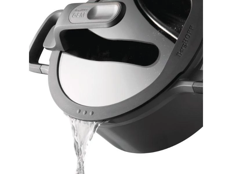 From a Spanish paella to an Indian curry, the culinary world is yours with this covered sauté pan! Featuring a lightweight aluminum body that’s equipped with stay-cool handles, a high-quality non-stick coating that allows for low-fat cooking and pouring rims for dripless pouring, this 24 cm sauté pan is a versatile piece of cookware that you’ll reach for time and again. It’s suitable for any kind of stovetop, including induction, and comes with a convenient glass lid that can be positioned vertically on the pot so you can keep your hands free to stir and serve. Need to strain the ingredients in the pan? Simply pick one of the two straining areas integrated in the lid and it’s done in the flick of a wrist. Suitable for all cooktops including induction. Inside dimensions: 10x10x3 / Outside dimensions: 14.25x10x5.25