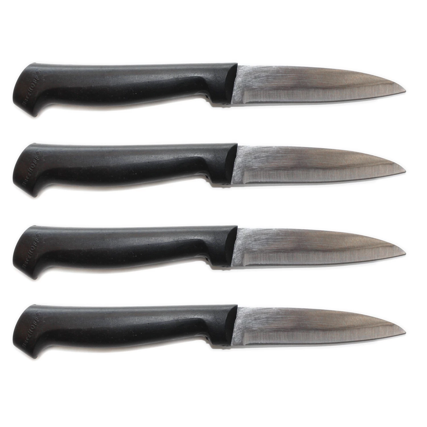 Set Includes: 4 Pcs of 4″ Black Paring knives. The knives are made of high-quality German steel with ABS handle coated with silicone for safe handling.