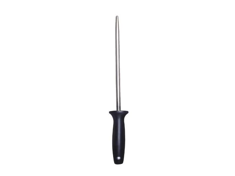 The 10″ Sharpening steel will realign the edge and remove any niche or burr. An oval rod provides more surface contact with the edge to achieve same results as traditional rod but with fewer strokes. A useful and perfect addition to any chef whether novice or expert.