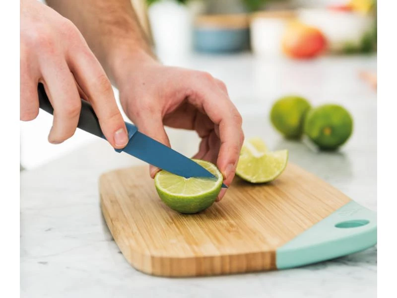 This small cutting board is the perfect helper for when you need to cut some carrots for a snack, chop onions, slice a tomato, Durable yet lightweight, the bamboo board is a great all-rounder and can also be used as a serving tray for cold meats or cheese. Got a small kitchen with limited storage space? The Leo chopping board easily fits in your drawer and has an integrated loop for optional hanging storage.