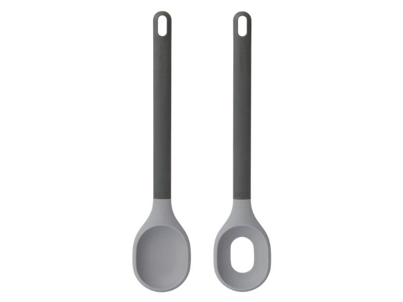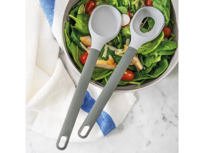 Salad servers set grey. Your favorite veggies, a delicious dressing and the right tools to mix it all, the perfect combination for your summer salad recipes! Use this set of Leo salad servers to mingle the various ingredients and then serve your salads at the table. The lightweight silicone won’t scratch your glass, ceramic or stainless steel bowls while the soft-touch rubber handle ensures easy handling.