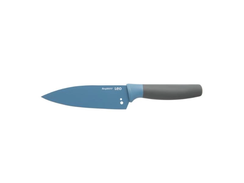 Small 5.5″ chef’s knife with herb stripper blue , This small chef’s knife is the perfect example of a Leo tool, combining several functions in a single utensil while adding a colorful touch to your kitchen. The stainless steel knife with non-stick coating is great for various chopping tasks while the integrated herb stripper helps you to get a handle on stemmed herbs such as rosemary, thyme or sage. Just pull the stems through the fitted hole, strip the leaves and start chopping!