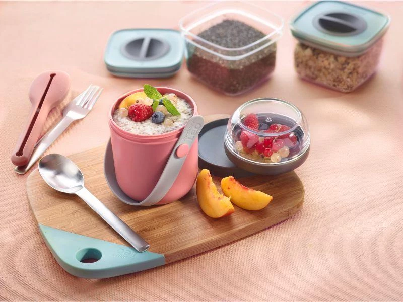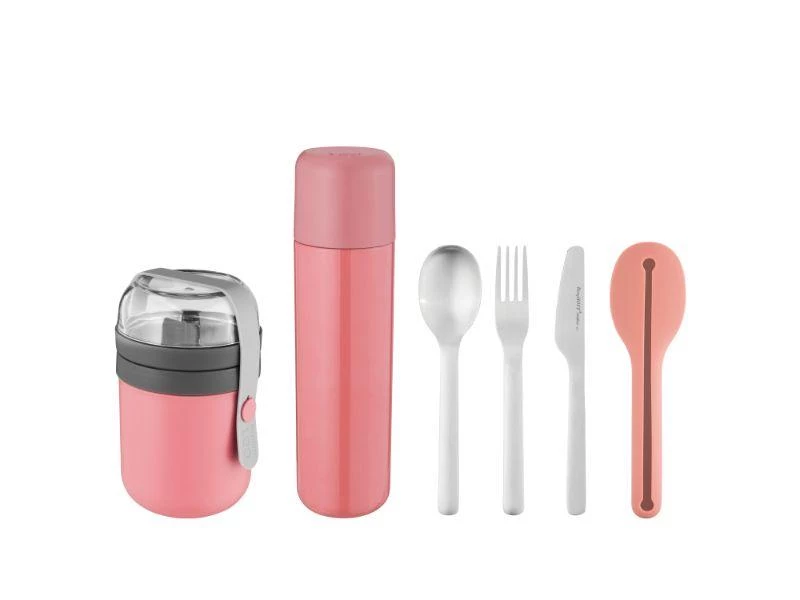 No more soggy bread croutons in your soup or soaked oats in your yogurt. The two separate containers of this dual lunch pot keep your ingredients fresh and crispy until you’re ready to eat. Just separate the leak-proof containers, mix their contents and enjoy your lunch or snack. The versatile item is not only dishwasher safe, but it is freeze proof and the body is microwave safe! You’re always ready for a meal on the go with this compact 3pc travel flatware set that provides you with a durable alternative for disposable cutlery. Take your favorite hot or cold beverages with you on the go in this convenient thermal flask. The double-walled construction keeps your drinks hot or cold for longer. This travel set comes with 1x 7″ knife, 1x 7″ spoon, 1x 7″ fork and 1x 7.5x2x1″ silicone sleeve to hold flatware for transport, 1x 6″ lunch pot, 1x 8.75″ thermal flask