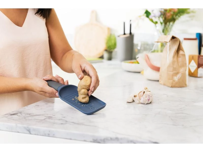 The textured surface makes it simple and effective to grate ginger in just seconds! First-rate for garlic too. The silicone ring on the base offers stability while grating. A quick rinse is sufficient to clean this grater.