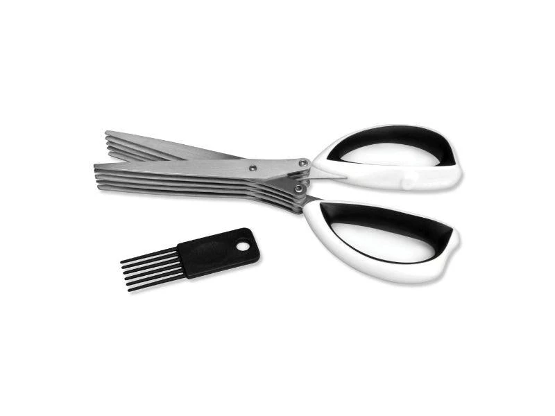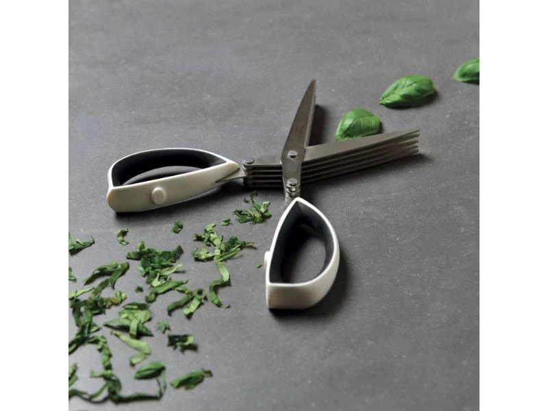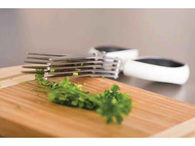 Five stainless steel blades to simplify chopping and to keep delicate herbs intact. Comes with cleaning brush.