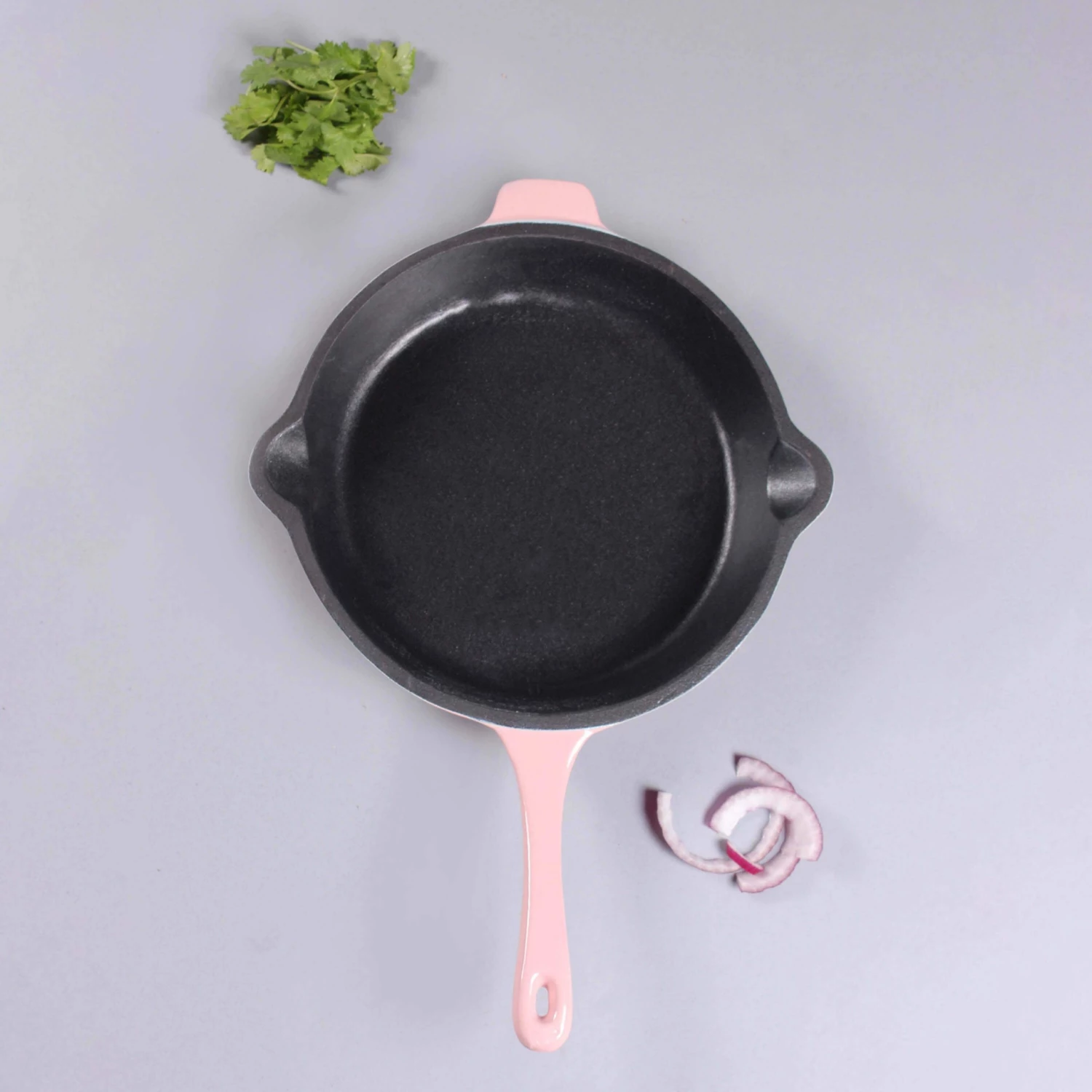 10″ Pink Cast Iron Fry Pan will brighten up your kitchen and your cooking. Featuring a classic design, this piece will provide superior heat retention during food prep and cooking.