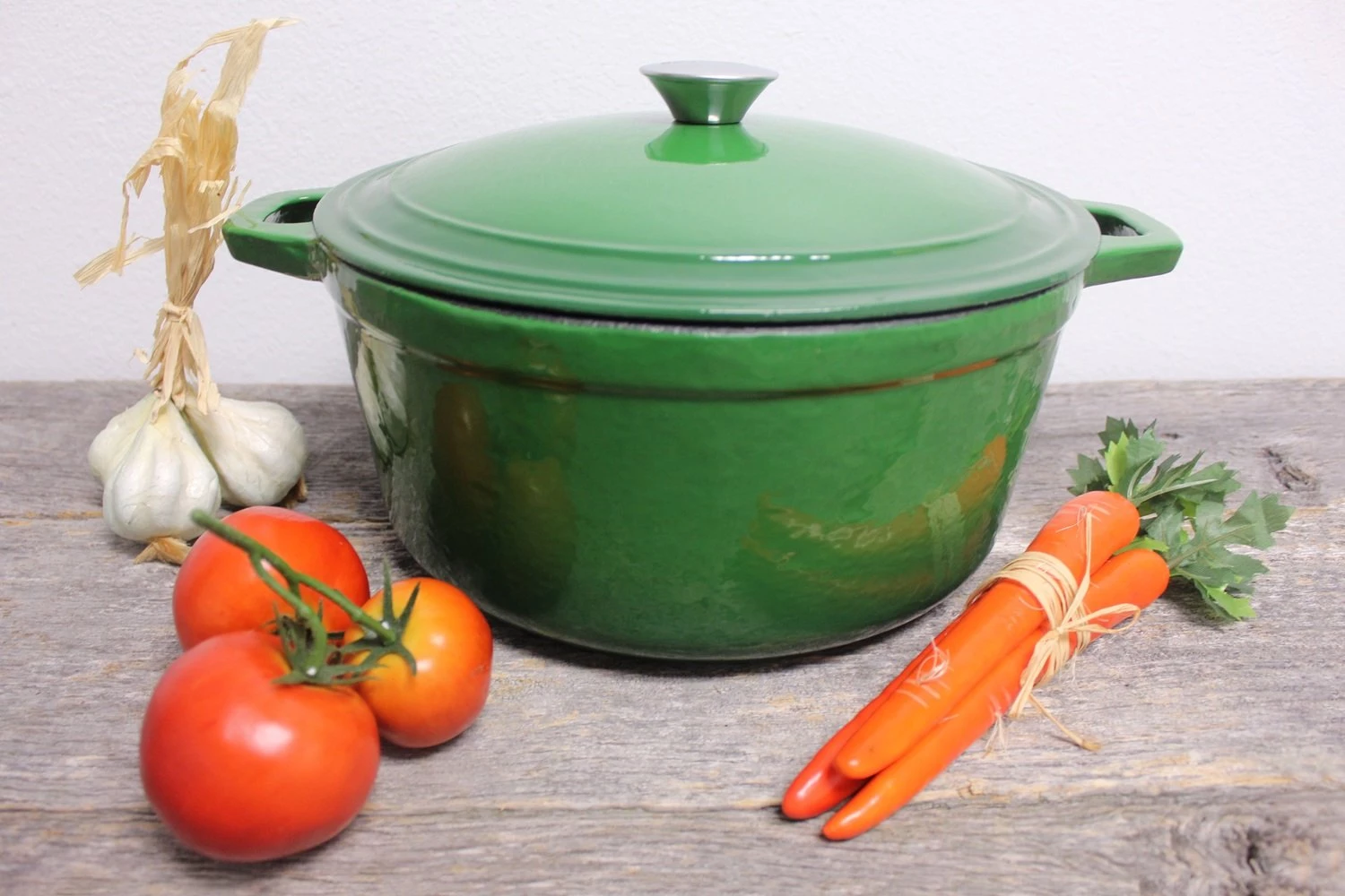 The 7qt Neo Cast Iron Green Round dish is a modern collection that marries function, design and innovative use of materials to create an outstanding line of cast iron cookware. The Neo cast iron is marked by pure lines giving each product its own identity and functionality. The covered casseroles are ideal for slow cooking stews, braising, baking and so much more. It is enameled inside and out and suitable for all heat sources including, gas, electric, induction and ceramic.