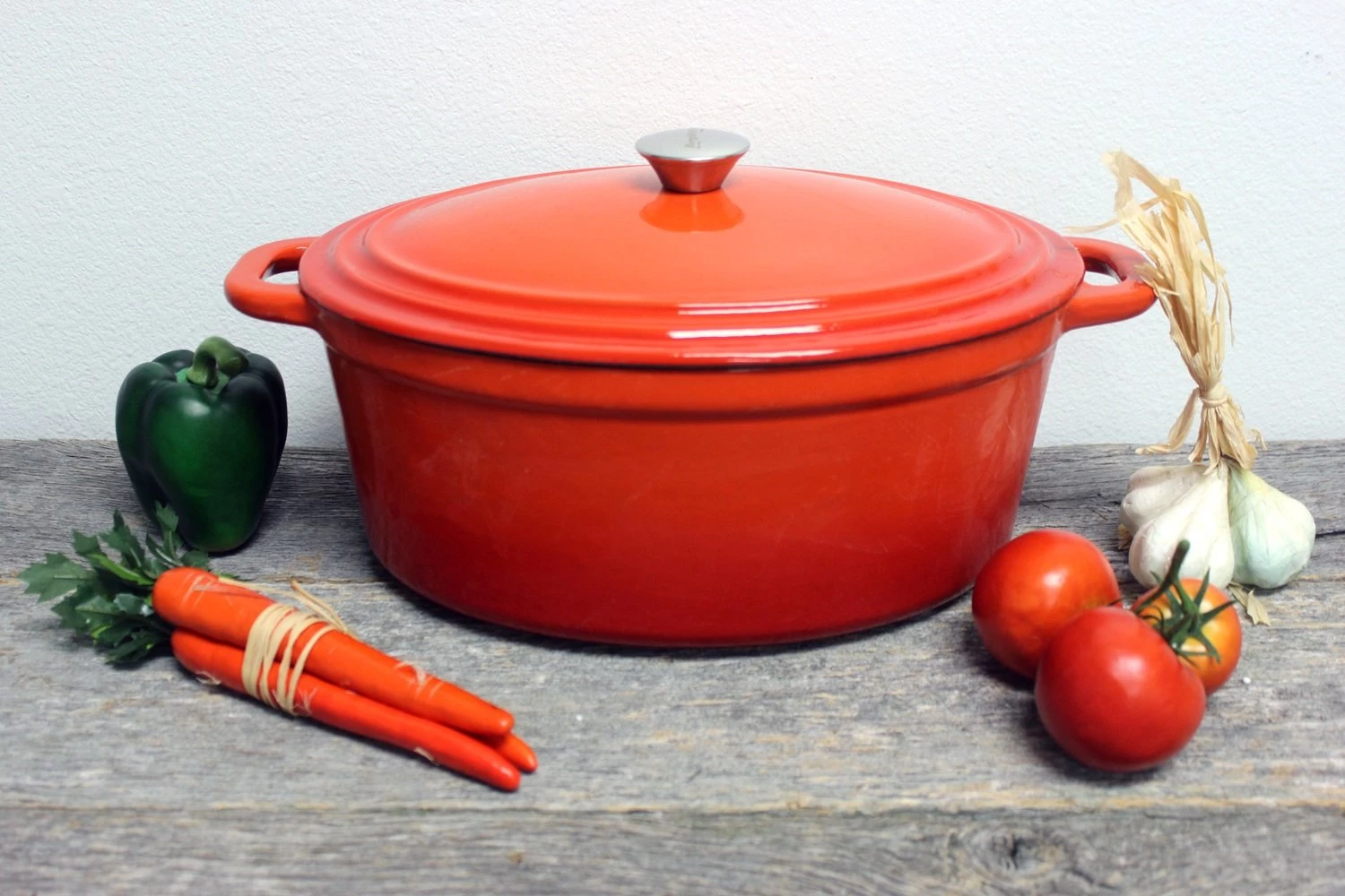 The 8qt Neo Cast Iron Orange Oval dish is a modern collection that marries function, design and innovative use of materials to create an outstanding line of cast iron cookware. The Neo cast iron is marked by pure lines giving each product its own identity and functionality. The covered casseroles are ideal for slow cooking stews, braising, baking and so much more. It is enameled inside and out and suitable for all heat sources including, gas, electric, induction and ceramic.