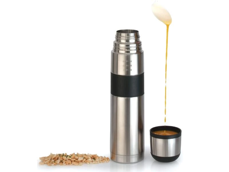 Winter-or summertime, this stainless steel thermal flask is the perfect companion to keep your drinks at just the right temperature any time of the year. The double-walled construction keeps the contents hot or cold for longer as you can enjoy a cup of your favorite drink whenever and wherever you want. Just take off the lid, place it on its rubber non-skid base and safely pour the liquid in the handy drinking cup.