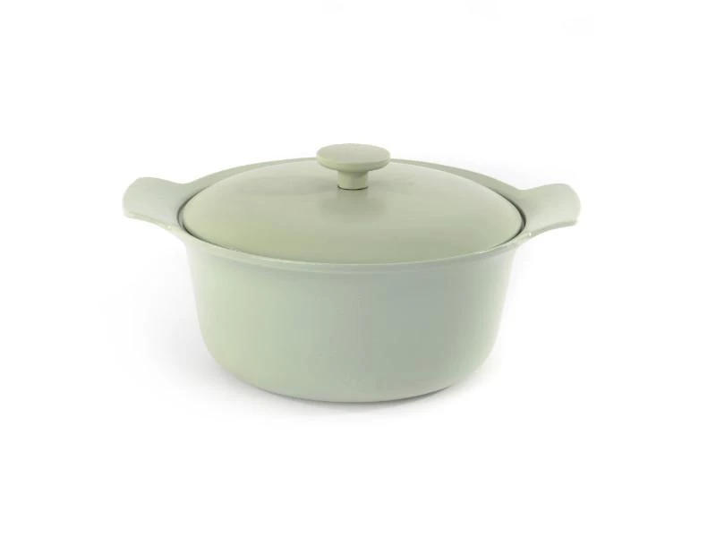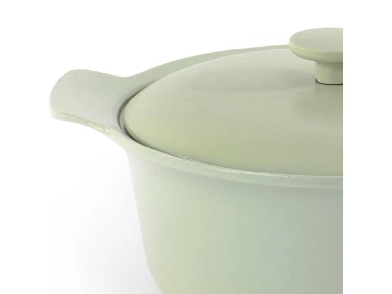 10″/4.4qt Green Covered Stockpot is made of Cast iron which has great heat retaining abilities: it’s the perfect choice for slow cooking and for hearty stews prepared in the oven or on the stovetop. The cover locks in the moisture and small bumps on the interior make sure the evaporated juices are directed on to the food for extra tasty results.