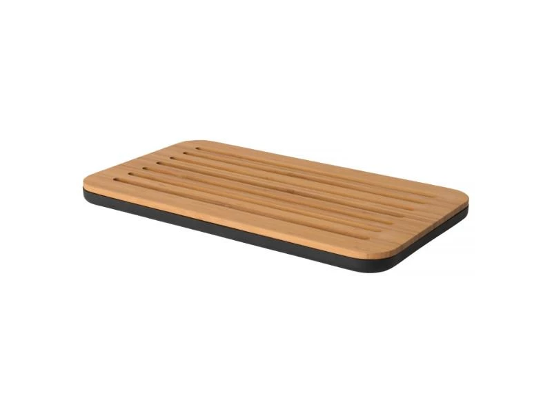 Multi-functional two-sided cutting board with crumb tray. Bread, cakes, poultry, vegetables, whatever you need to cut, this multi functional cutting board is up for the job! Use the antibacterial bamboo side to cut bread or pastries and simply empty the removable crumb tray once you’re done. Then turn the cutting board over and slice your meat or poultry on the food-approved plastic surface. Talk about having your cake and eating it too!