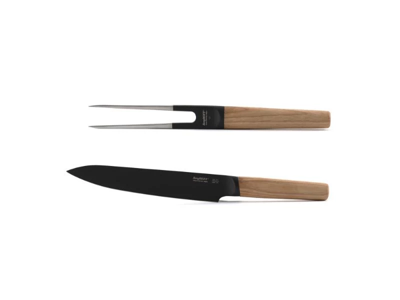 Set Includes: (1) 6.25″ Santoku Knife-Ash, (1) 7.5″ Carving Knife-Ash. The Ron line offers a range of versatile knives for the most common cutting jobs in the kitchen. The Ron Carving knife is a must have in the kitchen for roasts, hams etc. Black steel knives featuring a titanium and non-stick coating with either contrasting ash-wood handles or matching black handles.