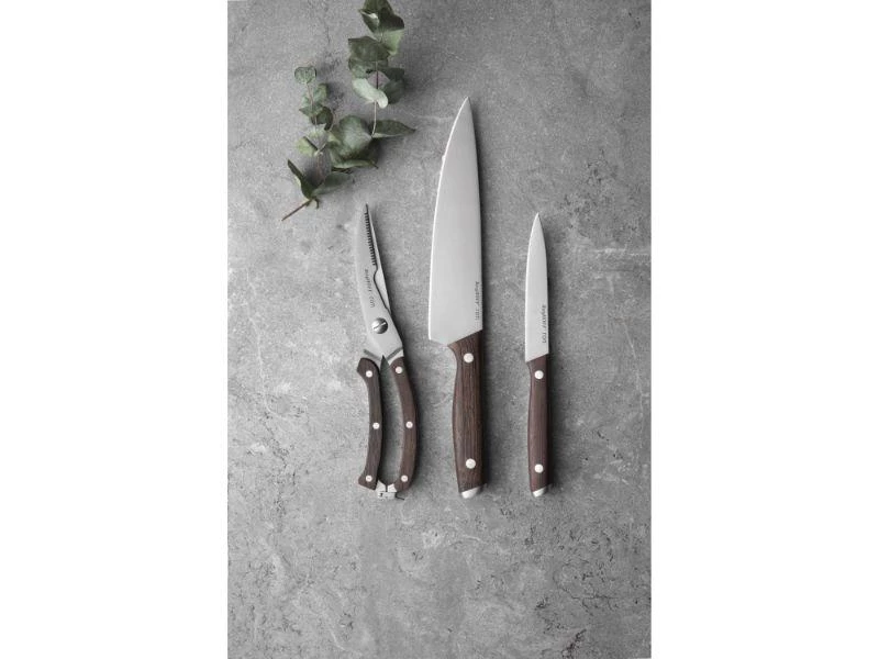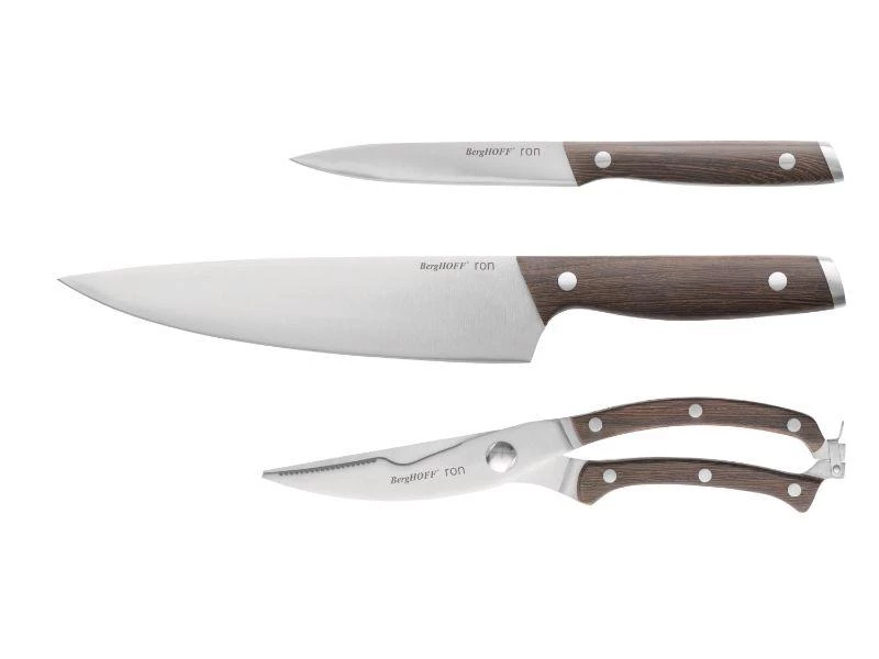 Peeling, slicing, dicing, chopping and cutting, with this multifunctional knife set, you’ve got all the tools for the job! Razor-sharp stainless steel blades with a satin finish. Crack-resistant wooden handles. Easy to clean. Set comes with 1x chef’s knife, 1x utility knife, 1x poultry shears