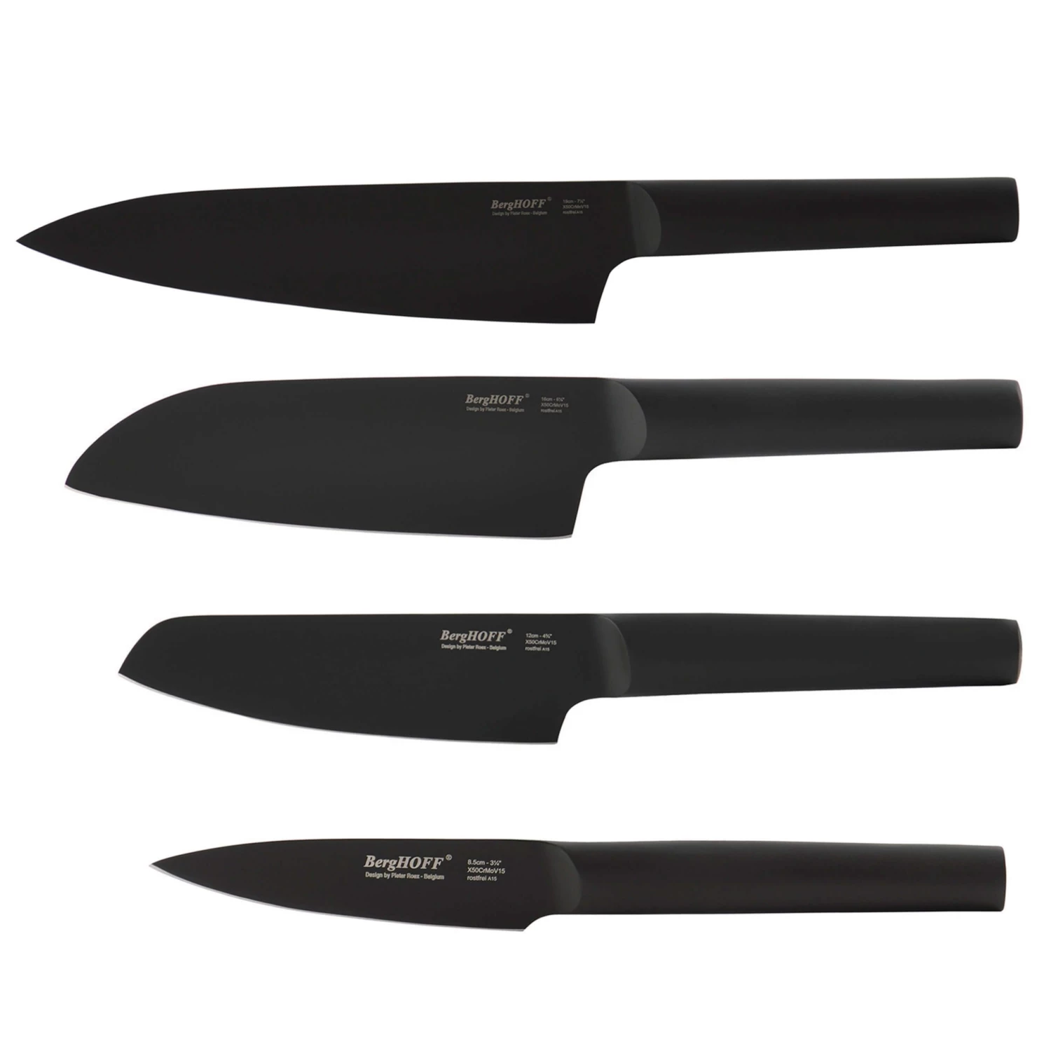 – Set includes: 7.5″ Chef’s Knife, 6.25″ Santoku Knife, 6.75″ Carving Knife, and 3.25″ Paring knife.