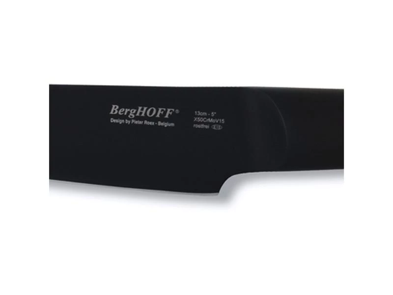 The Ron 5″ Black Utility Knife offers a range of versatile knives for the most common jobs in the kitchen. Choose from black steel knives featuring a titanium and non-stick coating with either contrasting ashwood handles or matching black handles. Or simply don’t choose and mix the two styles. Well balanced with a heavy bolster providing perfect balance for increased control. Handle: 18/10 Stainless Steel Hollow Handle, Blade: Chrome-molybdenum-Vanadium steel with a black layer coating (titanium + non-stick coating)
