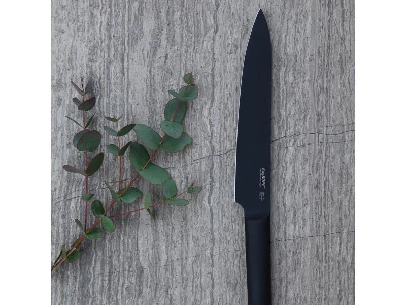 7.5″ Black Carving Knife offers a range of versatility for the most common cutting jobs in the kitchen. Choose from black steel knives featuring a titanium and non-stick coating with either contrasting ashwood handles or matching black handles. Or simply don’t choose and mix the two styles. Well balanced with a heavy bolster providing perfect balance for increased control. Handle: 18/10 Stainless Steel Hollow Handle, Blade: Chrome-molybdenum-Vanadium steel with a black layer coating (titanium + non-stick coating).