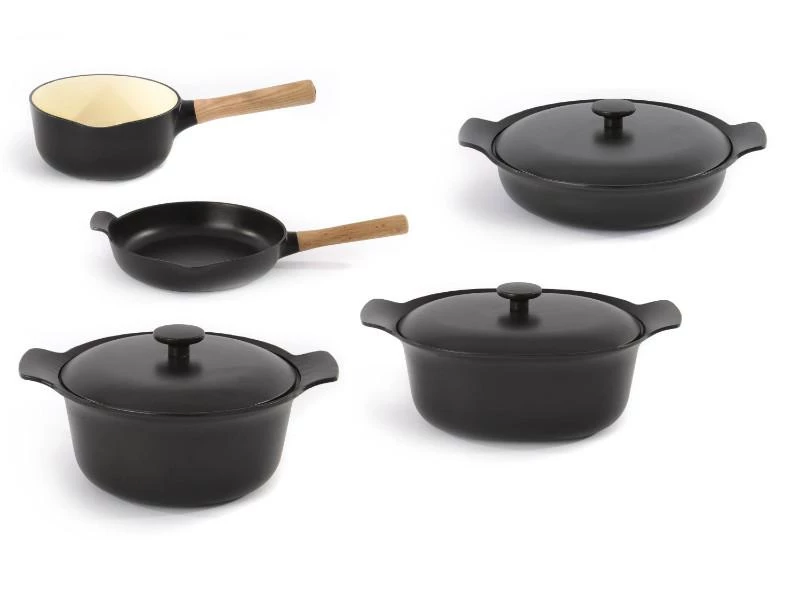 Set Includes: 7″ Sauce Pan- Black, 11″ Covered Deep Skillet- Black, 5.5qt Oval Covered Casserole dish- Black, 10″Cast Iron Covered Stockpot- Black, and 10.25″ Cast Iron Fry Pan- Black. The Ron Carving knife is a must have in the kitchen for roasts, hams etc. Black steel knives featuring a titanium and non-stick coating with either contrasting ash-wood handles or matching black handles.
