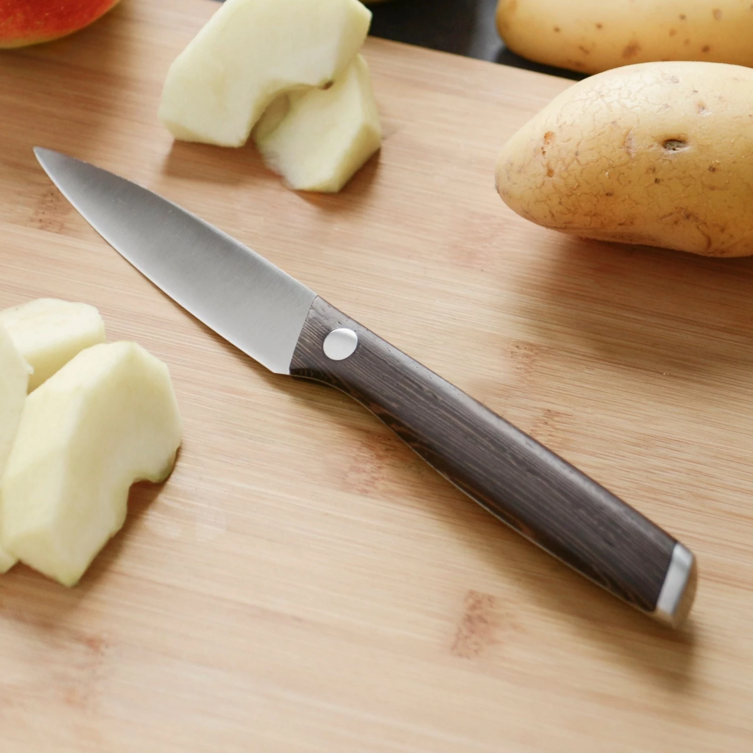 The knifes feature a crack resistant wooden handle with two stainless steel rivets. The blade is made of durable stainless steel and designed to last. The includes knives are designed to cut, slice and dice a wide variety of things to make meal prep a breeze! Set Includes: 3.25″ paring knife, 4.75″ utility knife, 8″ carving knife, and 8″ bread knife.
