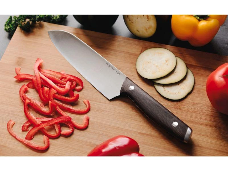 An efficient addition to any kitchen, this Santoku knife features a high-quality stainless steel blade that’s well-balanced with a contoured wooden handle for optimal control. This allows you to effortlessly slice, dice and mince a wide variety of ingredients while enjoying the warm touch of wood that also instantly gives your kitchen a touch of authenticity.