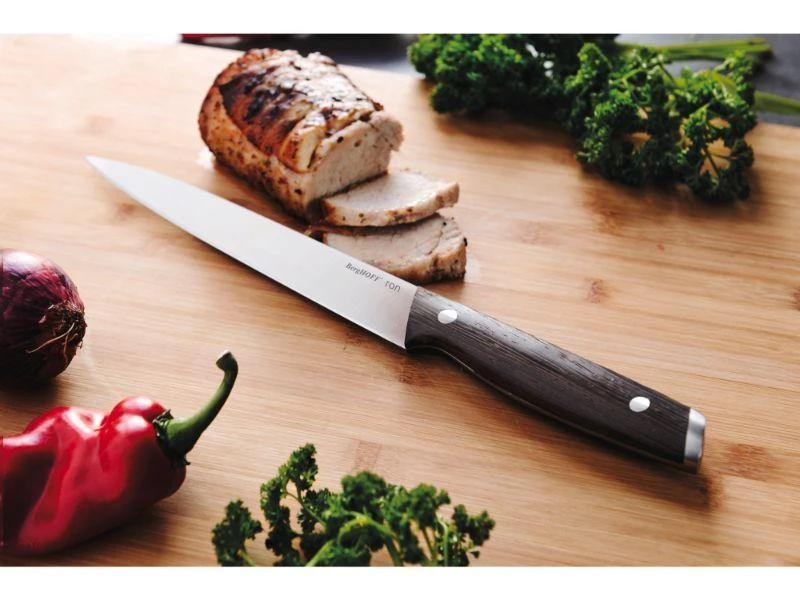 Slicing through meat, fish or poultry without tearing the flesh is child’s play when you’ve got the right knife in your hands. With this razor-sharp carving knife you have exactly what you need since the long narrow blade easily slices and cleans various types of food and the stylish wooden handle offers a safe and comfortable grip. So when that big roast makes its way to the table, this stylish carving knife is the perfect partner to make those thin and perfectly even slices!