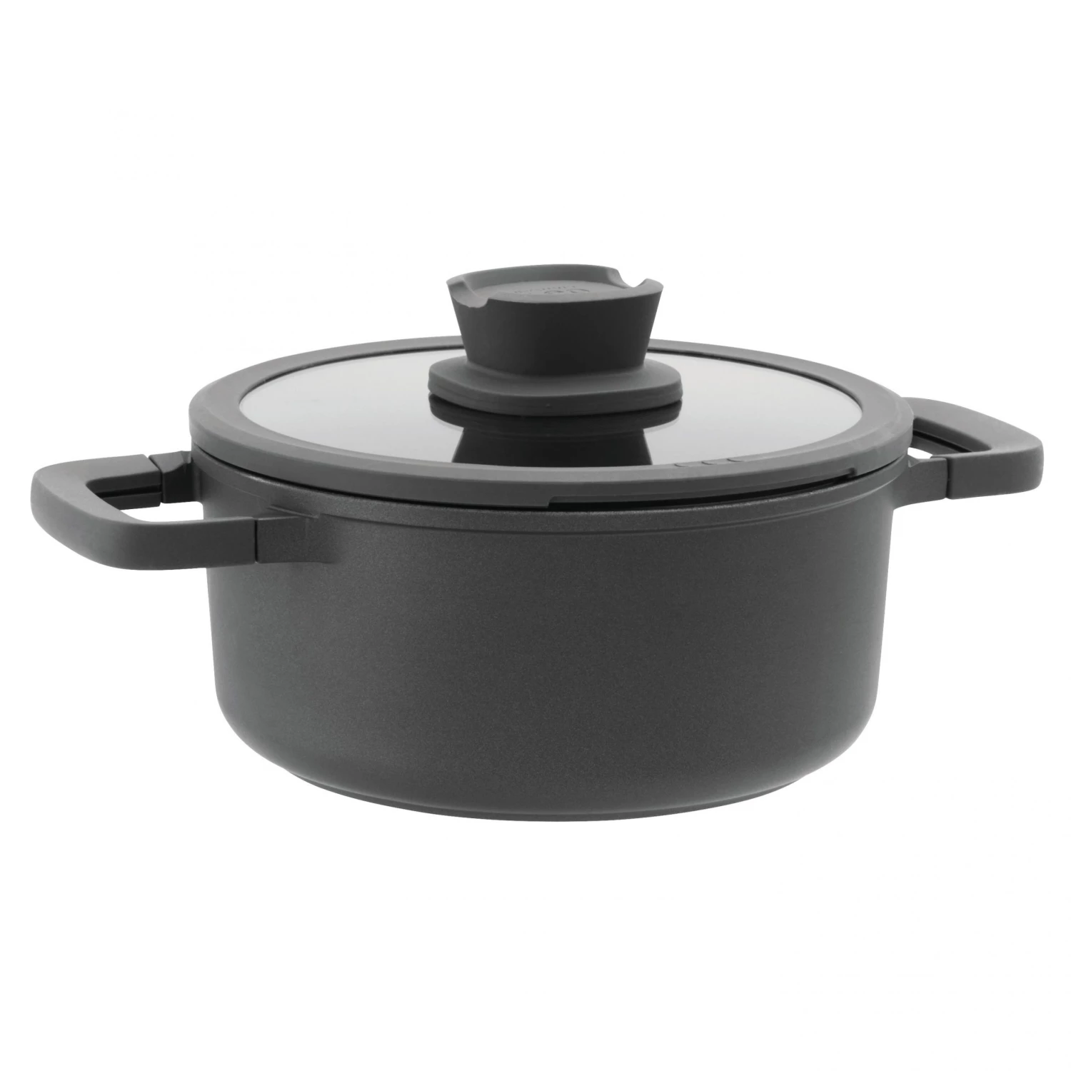 Made from cast aluminium and equipped with a high-quality non-stick coating for optimal user-convenience, this covered stockpot is a must-have in any kitchen. The body material ensures a fast and even heat distribution on any cooktop, including induction, while the clear glass lid with drain hole for easy straining and spoon rest function allows you to keep an eye on your food without having to lift the lid. When you’ve finished cooking, just grab the convenient handles and easily take the casserole to the table to serve up your latest culinary creation.