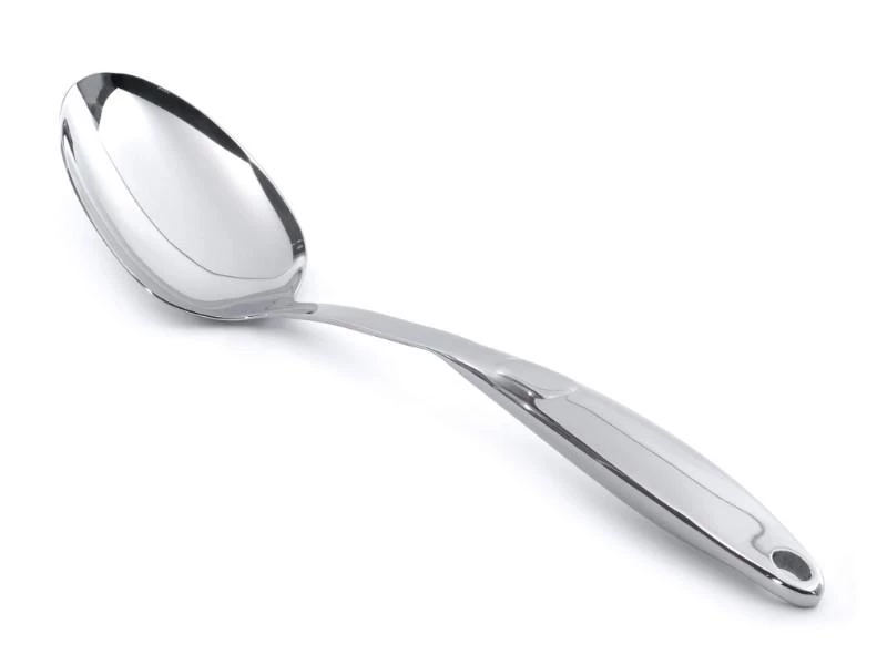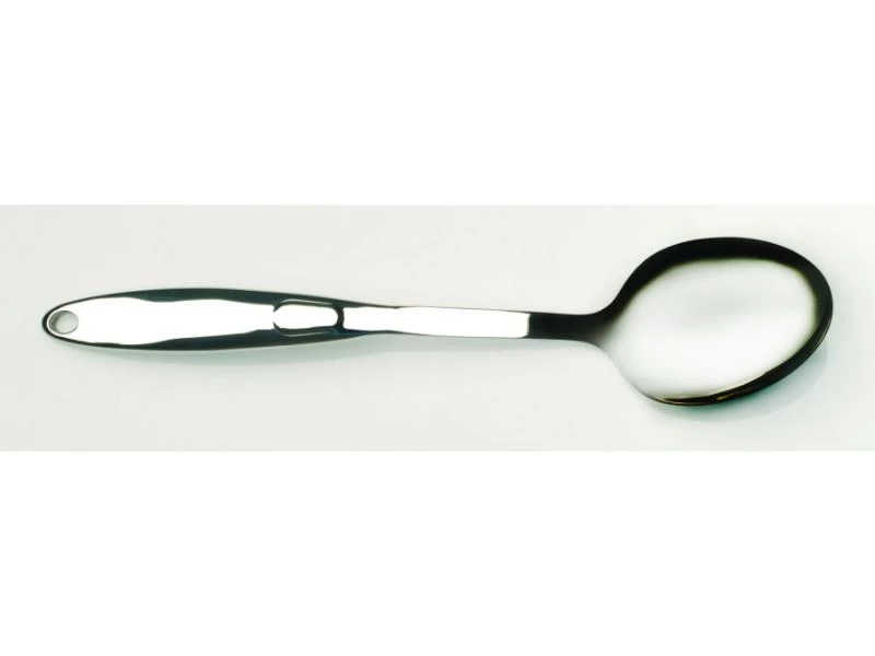 Straight Line’s Serving Spoon has the highly polished surface that is hard wearing, easy to clean and hygienic., Advanced manufacturing methods plus traditional craftsmanship guarantee flawless product quality. Measures 13 1/4″.