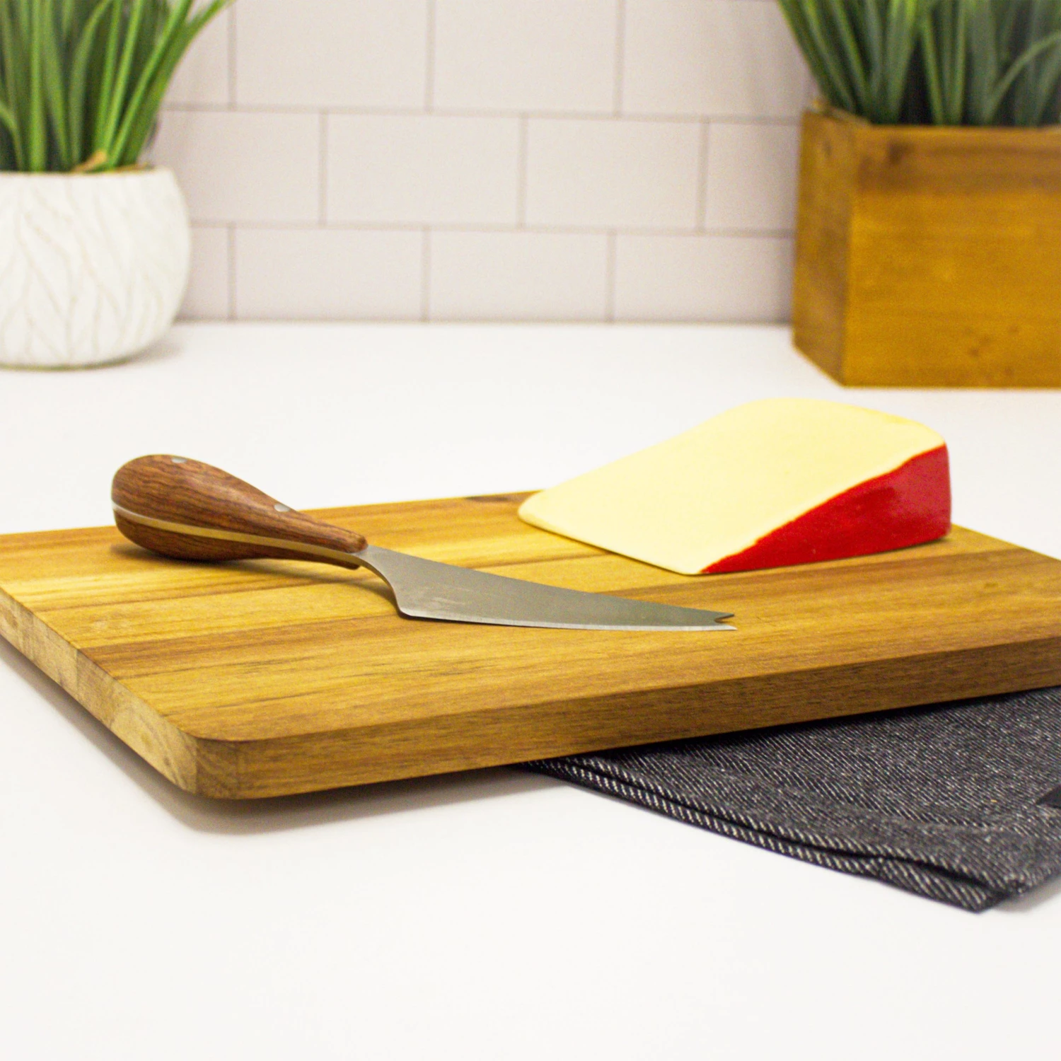 - Package includes: Stainless Steel Provence Soft Cheese Knives 1x 8.25″, 1x 9″, and 1x Wood Cutting Board 10″, Silver & Natural