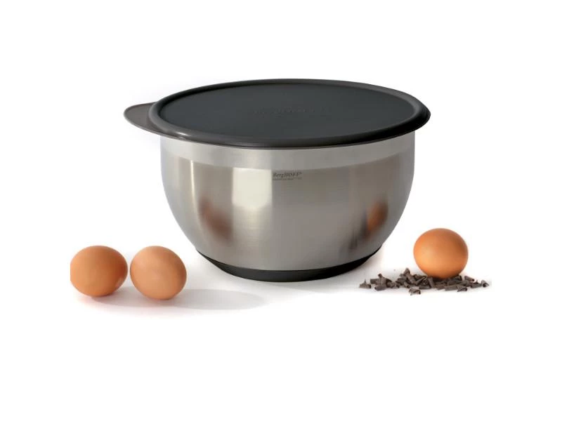Perfect for mixing all types of dough, preparing salads or simple for serving in style, this lightweight yet sturdy stainless steel mixing bowl is durable and easy to clean. The lid provides efficient closure ideal for storing food and features a rim that allows easy pouring.