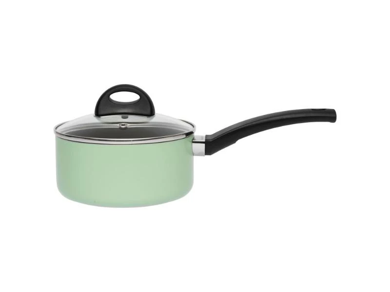 Covered saucepan green. A good saucepan is a real must-have in any kitchen. With its aluminum body that distributes heat quickly and evenly, this pan guarantees a delicious result every time. The non-stick coating prevents food sticking to the bottom, making the clean-up a piece of cake. It’s suitable for all hob types, including induction, and features a stay-cool handle to avoids hand burns.