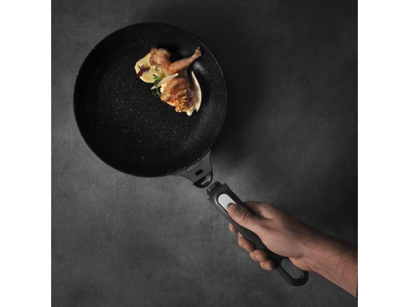 Highly functional with an innovative design, this frying pan is a keeper. It’s the perfect size to make omelettes or pancakes, pan-fry fish or sear meat before using it in a stew or casserole. The aluminum body ensures a fast and even heat distribution to avoid burned edges while the multi-layered non-stick coating makes no or low fat frying possible for health-conscious cooking. With a simple twist you can detach the handle to use the pan in the oven as well.