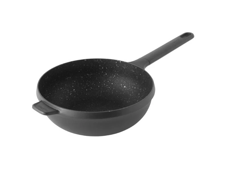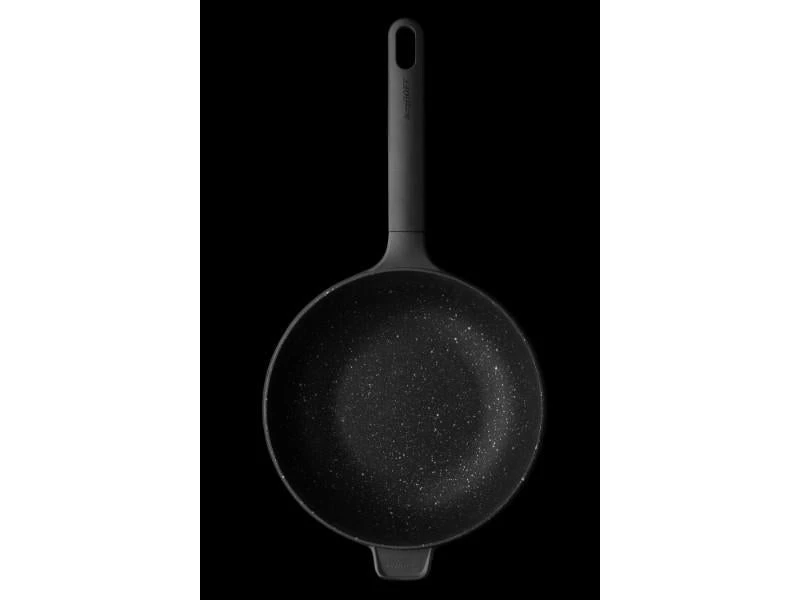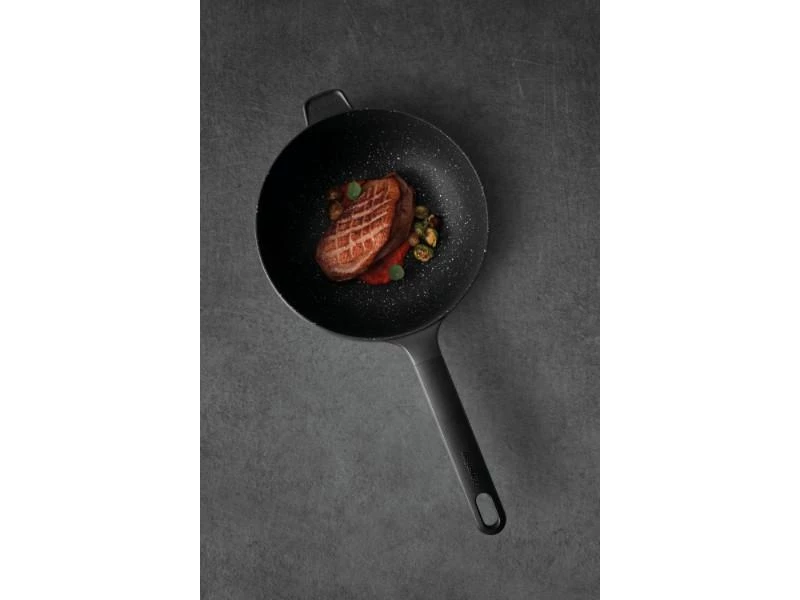 Add your favorite veggies, some chicken and a tasty sauce in this stir frying pan and you’ve got a delightful meal! This aluminum pan distributes heat quickly and evenly while the flat bottom ensures that all your stir fry ingredients are cooked equally. The non-stick coating means you need less to no oil, perfect for when you want to cook healthily.