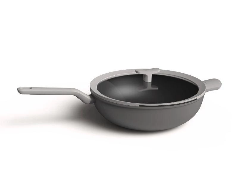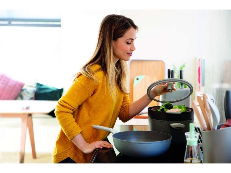 If you’re in love with the smell of a good stir-fry, then you’ll fall for this user-friendly stir fry pan in no time! The pan’s aluminum body ensures a fast and even heat distribution for a perfect fry on any kind of stovetop and is covered with a high-quality non-stick coating that allows you to cook with little to no fat. Tossing the ingredients in the pan is a piece of cake thanks to the soft-touch stay-cool handle, just like keeping the food warm and even straining it by means of the clear glass lid with integrated straining function.