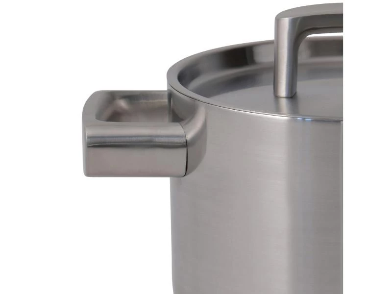 - 5 ply polished outside, satin-finished inside, 18/10 Stainless Steel, Casted Steel Handles