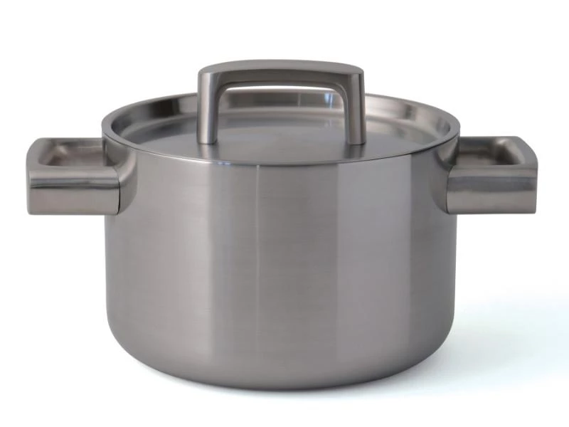 7″/3.2qt Covered Casserole Dish is made up of Four different materials in 5-layers are arranged in an inventive alliance for evenly spreading the heat. Bottom and body from one seamless unity guaranteeing that the heat spreads very fast from base up to the rim. Cold grip handles offer safety and comfort. 18/10 Stainless Steel