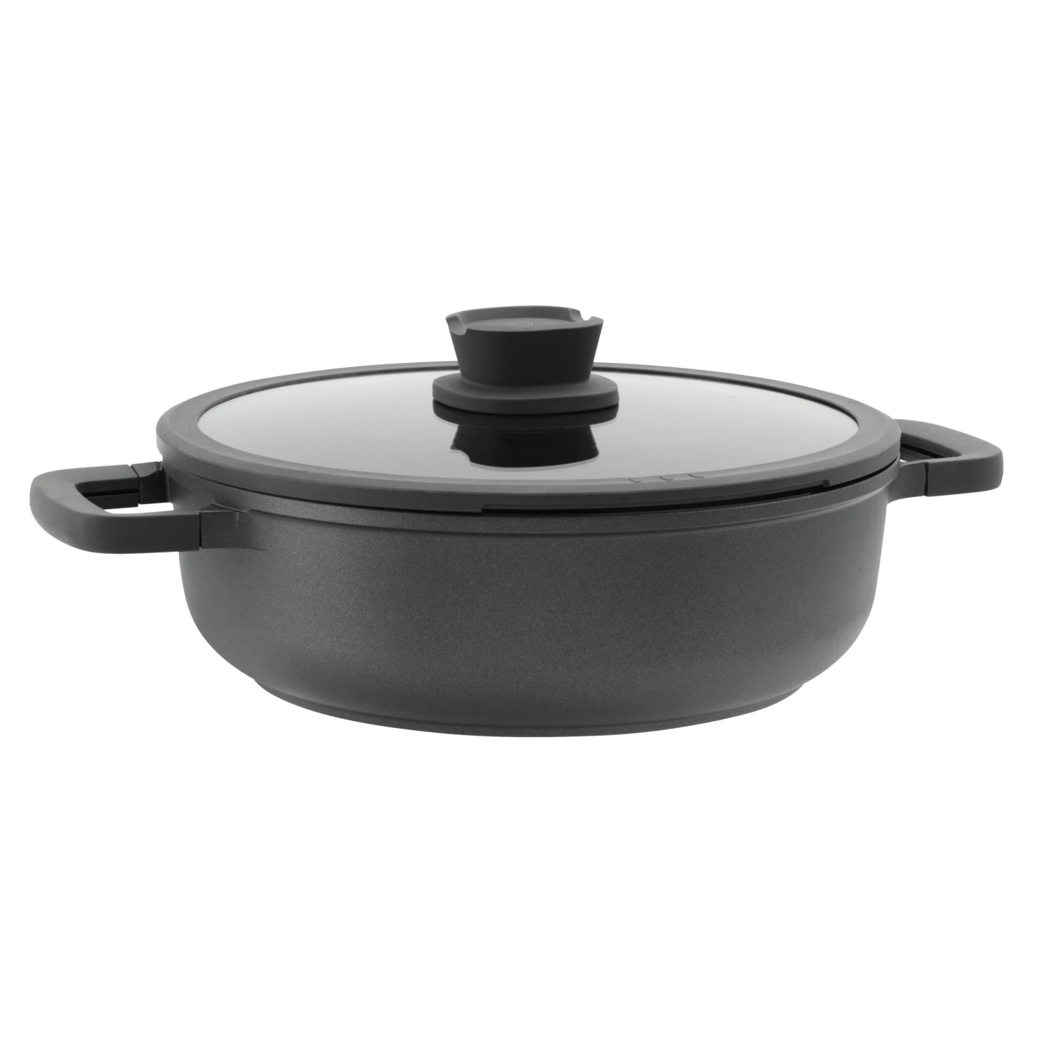 When you’re thinking of making a tasty risotto or sautéing some potatoes for dinner, but don’t want to spend ages cleaning up afterwards, this covered sauté pan is the perfect partner. Its cast aluminium body ensures a fast and even heat distribution on any kind of cooktop, including induction, and is covered with a high-quality non-stick coating that not only allows you to cook with a minimal amount of oil but also makes the pan a breeze to clean. Add to this the soft-touch handle and the clear glass lid that’s equipped with a drain hole for easy straining and spoon rest function, and you’ve got a piece of cookware that’s sure to make your life easier!